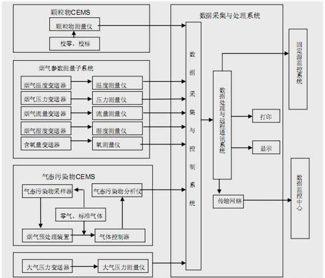CEMSÖ÷ÒªÓÉÑÌÆø²ÎÊý²âÁ¿×Óϵͳ¡¢¿ÅÁ£ÎïCEMS¡¢ÆøÌ¬ÎÛȾÎïCEMS¡¢Êý¾Ý²É¼¯Óë´«ÊäµÈµ¥Ôª¼¯³É¶ø³É£¬ÐγÉÒ»¸ö¼¯Êý¾Ý²É¼¯¡¢´¦Àí¡¢ÏÔʾ¡¢Í¨Ñ¶¡¢Ô¶³Ì¼à¿ØµÄÒ»Ì廯ϵͳ¡£ÈçÏÂͼ£º